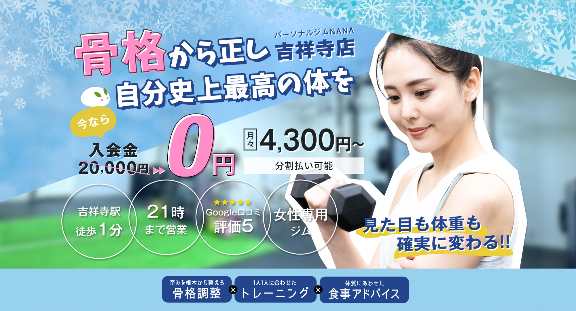 | 店舗名 | パーソナルジムNANA 吉祥寺店 |